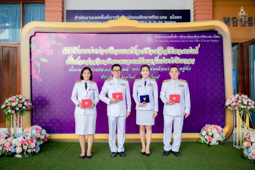 วันศุกร์ที่ 15 พฤศจิกายน พ.ศ. 2567 ผู้บริหารและคณะครู เข้าร่วมพิธีรับพระราชทานเครื่องราชอิสริยาภรณ์ชั้นต่ำกว่าสายสะพาย และเหรียญจักรพรรดิมาลา เบื้องหน้าพระบรมฉายาลักษณ์ พระบาทสมเด็จพระเจ้าอยู่หัว ประจำปี 2565 – 2567 สังกัดสำนักงานเขตพื้นที่การศึกษามัธยมศึกษสศรีสะเกษ ยโสธร ณ หอประชุมนันทพันธ์ สพม.ศรีสะเกษ ยโสธร อำเภอเมืองศรีสะเกษ จังหวัดศรีสะเกษ